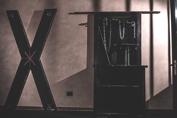 Caratteristiche tecniche: Croce di S. Andrea imbottita . Linea “Tecnica di Taixo”. Specifiche: Struttura in ferro, con parti in multistrato . Predisposta con agganci per Fermapolsi e fermacaviglie , e con fori per l’entrata del piede,e aderire così con il corpo all’attrezzo, nel caso si esponga la schiena al gioco. Materiale: E’ un prodotto con…
