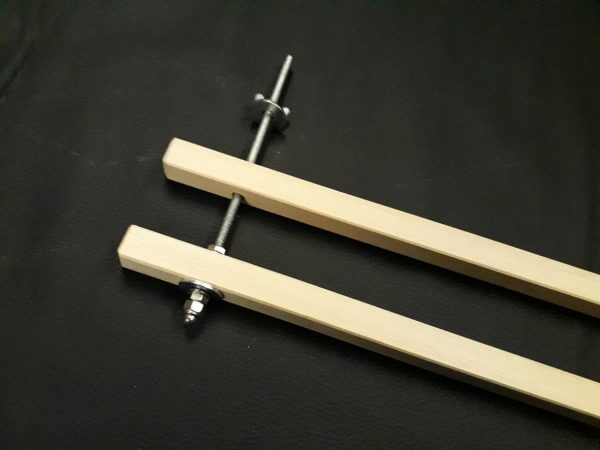 Bastoncini in legno, con vite senza fine metallica, provvista di galletti finali, per chiudere i bastoncini tra loro.
