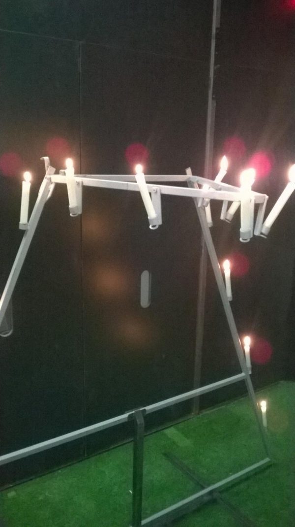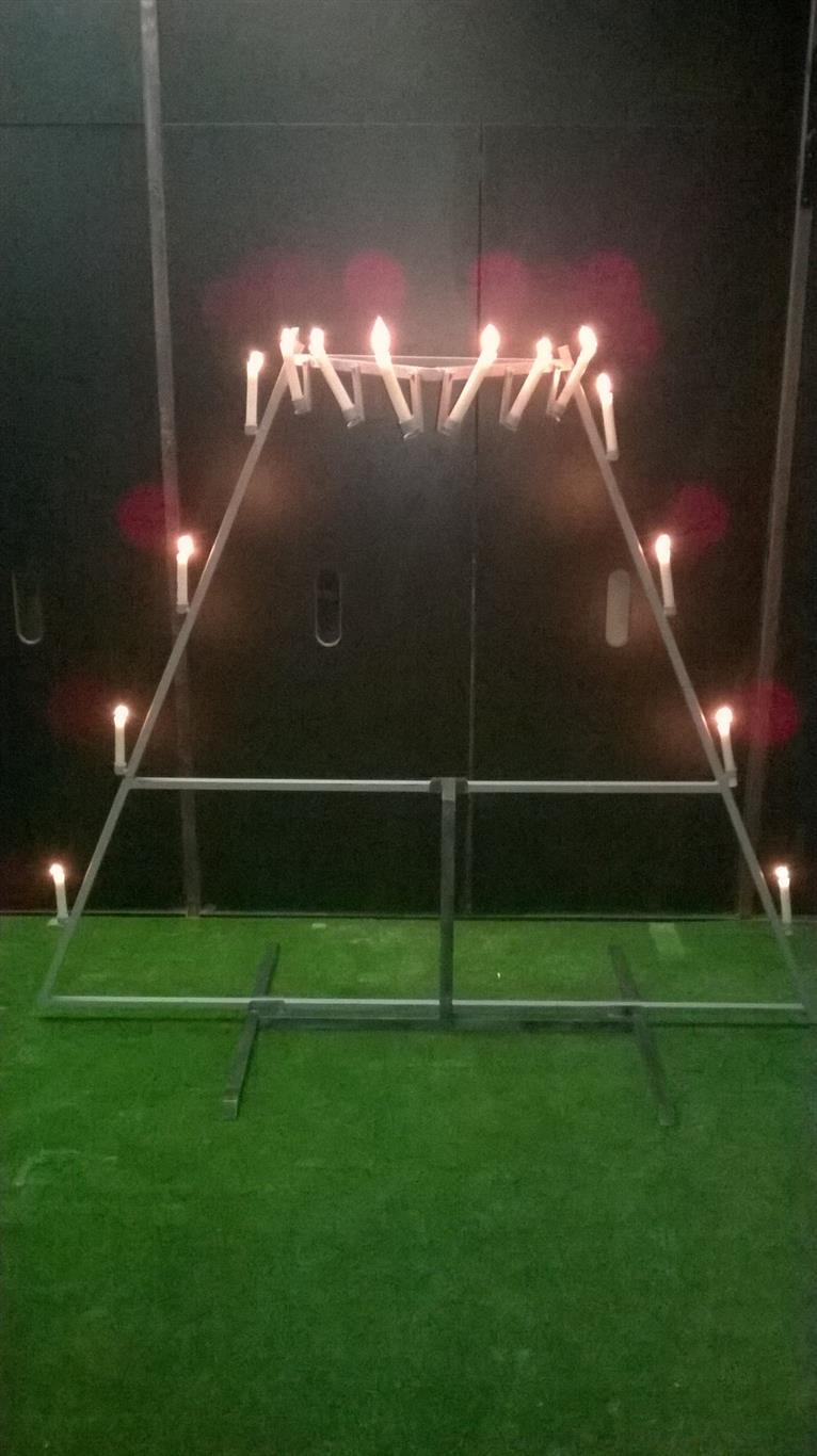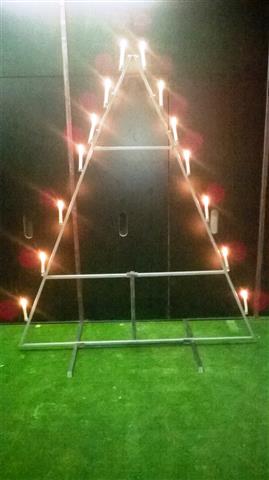 Caratteristiche tecniche: Grande struttura autoportante a triangolo, per posizionare candele.