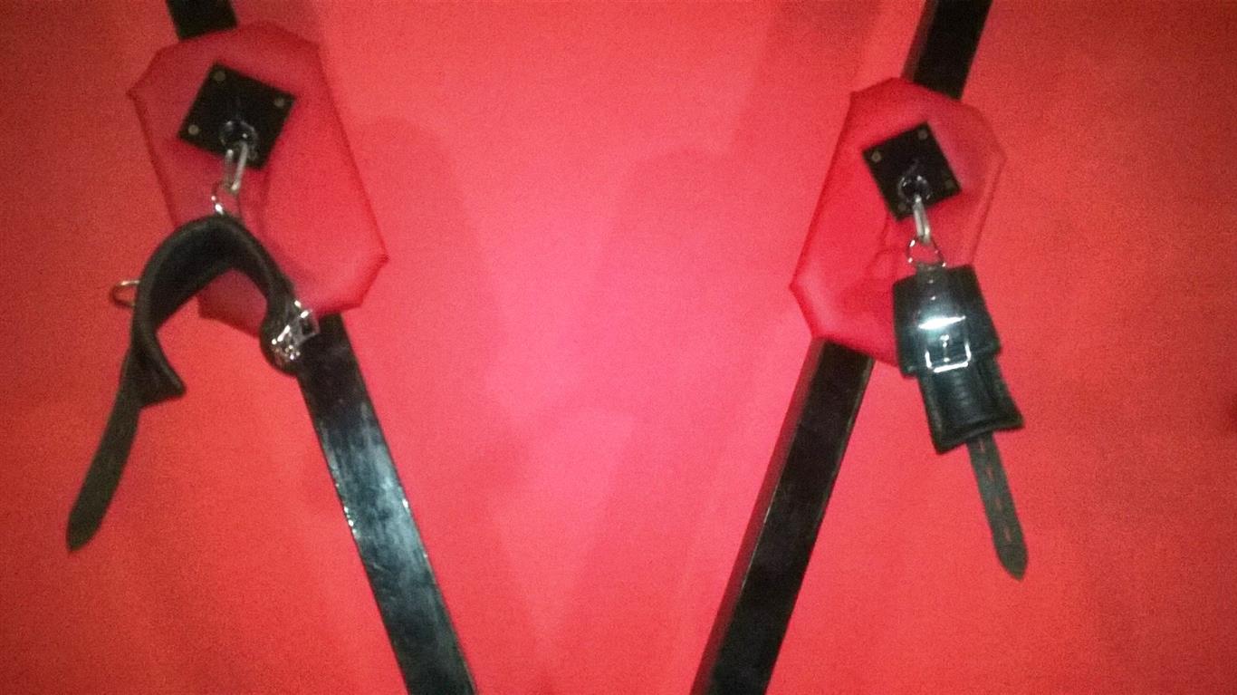 Funzionalità: E’ uno degli attrezzi piu’ classici per chi ama il gioco Sadomaso, visto qui in un contesto estremamente tecnico e pratico. La croce è autoportante e smontabile in 3 minuti, tramite il distacco della parte in verticale, dalla base orizzontale. Gli anelli di fissaggio polsi e caviglie, sono regolabili in altezza, con fermo/chiusura mediante pomello. E’ indubbiamente un attrezzo dal grande impatto visivo, molto robusto.