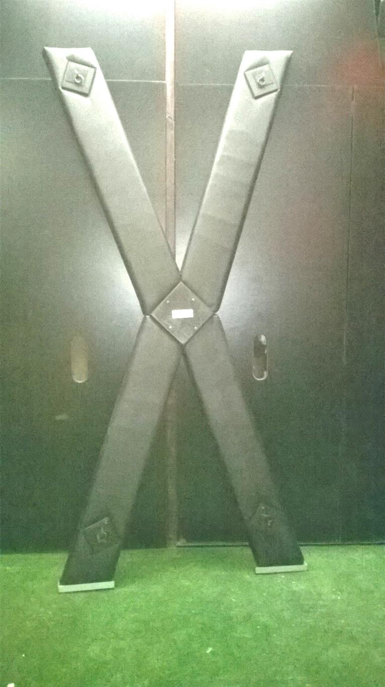 Materiale: L ‘attrezzo è completamente in legno multistrato, imbottito e rivestito in similpelle “Z06h” ( materiale Impermeabile, igienico e inattaccabile da elementi quali cera di candele o similare). I punti di aggancio sono in ferro , mentre gli inserti neri sono in multistrato ad alta intensita’.