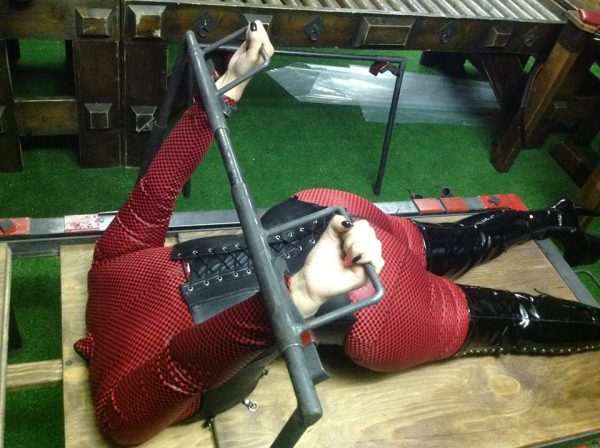 Funzionalità: E’ una struttura costrittiva in orizzontale, con annessa una rastrelliera con cinque optional. Con questi optional si ottengono svariate posizioni di gioco, dal semplice bloccaggio , collo/polsi/ caviglie, (la chiusura di ogni bloccaggio è ottenuta mediante scorrimento di un fermo metallico ) al sostegno del bacino con un appoggio dotato di molle per la controspinta, (indirizzato a chi ama e cerca giochi “Vanilla” in un contesto “Rouge”). Altri optional permettono di bloccare i polsi in posizioni multiple, visto la possibilita’ di spostare ogni accessorio sia in altezza, che in lunghezza lungo tutto il piano orizzontale dell’attrezzo. Due punti di aggancio degli accessori, permettono inoltre, di variarne l’angolazione rispetto il piano orizzontale. Piano orizzontale che presenta un punto di appoggio per il viso e sotto di esso offre la possibilita’ di ( attraverso il semplice spostamento di una sezione del piano ) di bloccare il collo in posizione “a caduta”, favorendo cosi’ molte applicazioni di gioco, raramente presenti in attrezzi di questo tipo. Grazie ai vari optional infine , questo attrezzo offre davvero molti spunti di gioco dettati dalla fantasia, sia per chi ama il gioco “hard”, che “soft” , che “Vanilla”.…Un ultima particolarita’ riguarda la rastrelliera: Essa presenta cinque optional di gioco, ma i punti di aggancio predisposti sono sei.. Un punto è vuoto ,ed aspetta l’optional personale , unico e “su misura” del cliente.