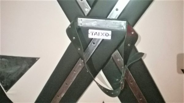 Specifiche: Struttura in ferro autoportante con pannello sagomato in legno imbottito e rivestito in similpelle, sovrapposto da Croce di S. Andrea,in legno imbottita e rivestita in similpelle a colore in contrasto, con inserti in metallo smerigliato a mano. Il tutto girevole tramite motore a 220 volts, regolabile in velocita’ e direzione di giro. Gli attacchi dei polsi e delle caviglie al pannello sono anch’essi smerigliati, e regolabili a seconda dell’altezza della persona.