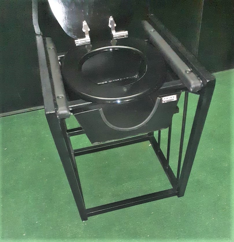 Specifiche: Struttura in tubolare di ferro, con pianale in multistrato di legno. Presenta una vaschetta raccoglitrice in metallo, coperchio wc in plastica e schienale ripiegabile, sottostante al piano in plexyglass.